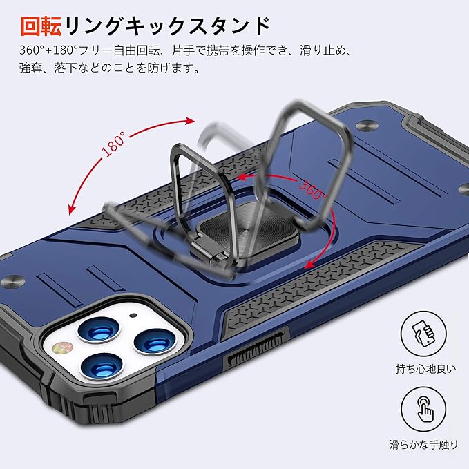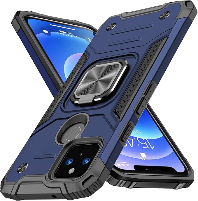 Google Pixel 5 ケース リング付き 耐衝撃 PC 衝撃吸収 米軍MIL規格 車載ホルダー対応 全面保護 Google Pixel 5 携帯カバー薄型 軽量 スタンド機能 TPU カメラ保護 人気 ブルー XLT110-KM-QIN-P5-01