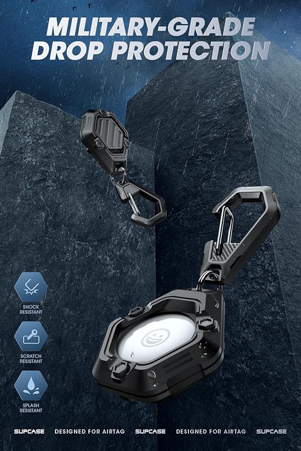 SUPCASE Unicorn Beetle Proシリーズケース Apple AirTag(2021)用 耐衝撃 ソフトシリコン保護エアタグホルダー キーチェーンカラビナ付き 1パック (ブラック)