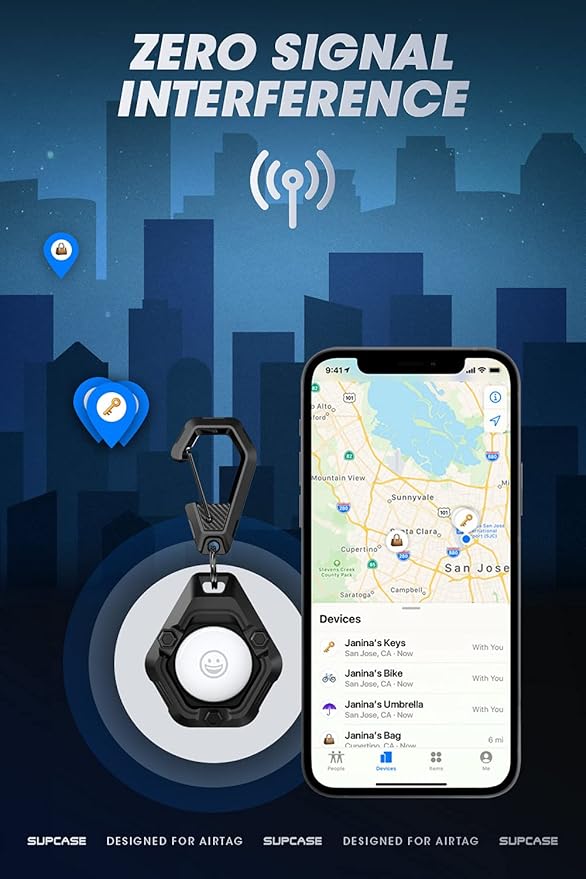 付属のカラビナは、AirTagを紛失するのを防ぎ、持ち運びが簡単で便利です。 鍵、バッグ、ペットの首輪などに取り付けることができます。