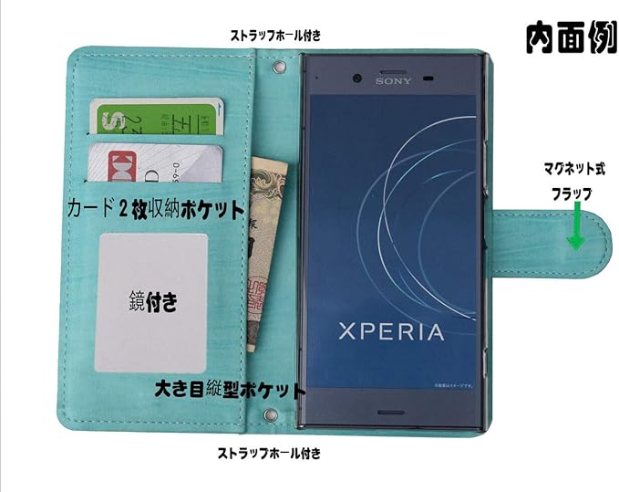 「kaupili」 SONY ソニーAQUOS R6 SH-51B docomo softbankケース 鏡/ミラー付き 合皮 スタンド カメラ穴 ストラップホール マグネット 手帳型 横開き 手帳 鏡 携帯 スマホ カバー ケース スマホケース 手帳型 お財布機能付き化粧鏡付き (B18-W142-HD-Y6)