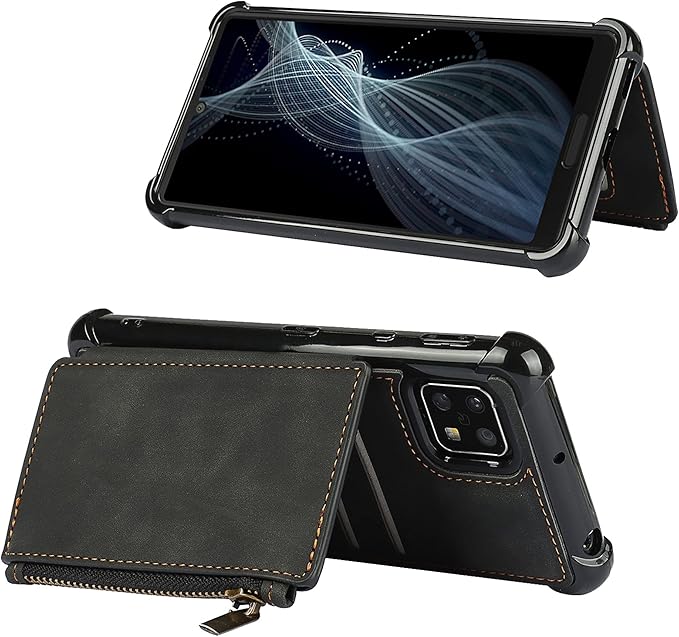 AQUOS sense4 SH-41A SH-M15 / sense4 lite SH-RM15 / sense4 basic A003SH / sense5G SH-53A SHG03 SH-M17 背面ケース シャープ アクオス センス4 保護カバー アクオス センス5g case Zouzt 多機能スマホケース 携帯カバー 革レザー ストラップ付き 軽量 財布型 カード収納 スタンド機能 磁気ボタン内蔵 耐衝撃 5色 ブラック