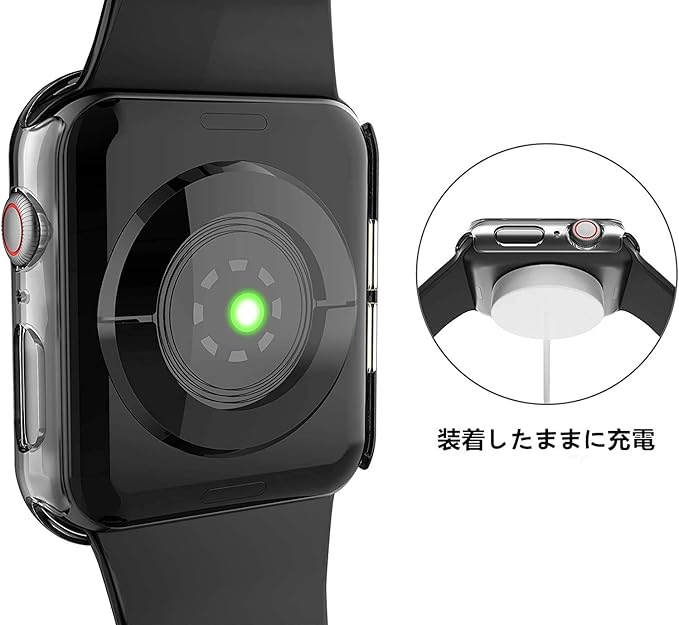 Misxi 【2枚】対応Apple Watch Series 6 / SE / 5 / 4 40mm 用 ケース, 一体型PC素材 全面保護 強化ガラス保護カバー(1 ブラック + 1 クリア)