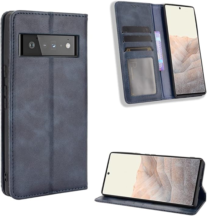 Google pixel 6 ケース【MARR】 スマホケース 手帳型 シンプル カバー 手帳型ケース pixel 6 高級PU レザー カバー カードポケット 手作り スタンド機能付き 全面保護 マグネット 吸着 (ブルー)