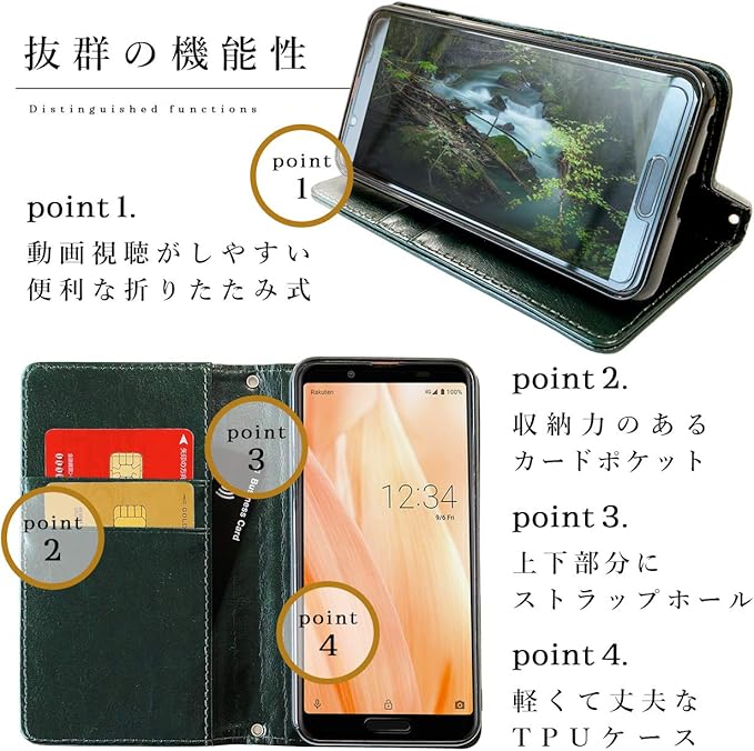 AQUOS R6 SH-51B A101SH ケース 大人の雰囲気漂う 編み込み 手帳型 手帳 カバー ダークグリーン スタンド機能 2つ折り 手帳型ケース スマホケース アクオス aquosr6 SH-51Bケース SH-51Bカバー A101SHケー