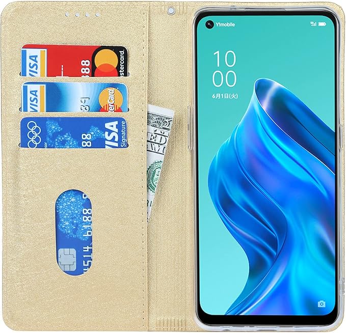 Eastwave OPPO Reno5 A ケース oppo reno 5a ケース 手帳型 reno5A OPPO case ストラップ付き PU皮革 明るい色 内蔵マグネット 携帯カバー カードポケット スタンド機能 便利 ゴールド
