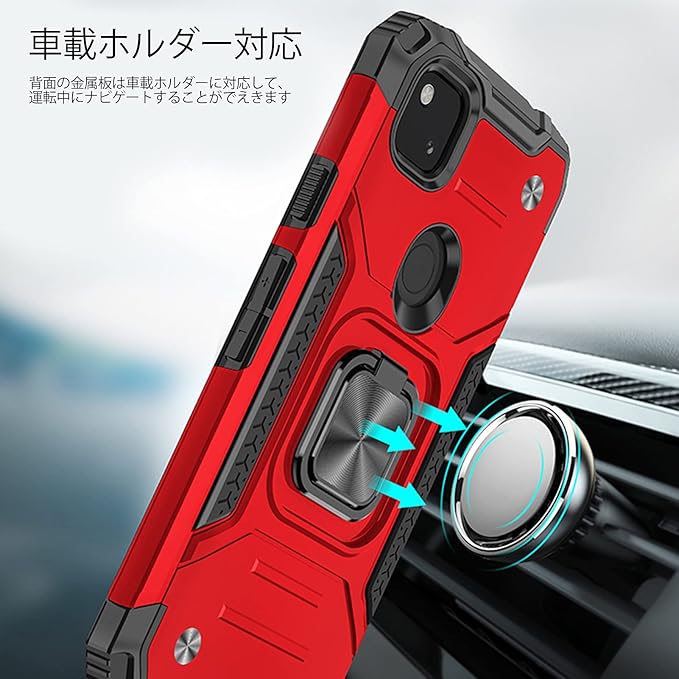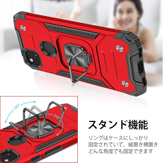 Google Pixel 5 ケース リング付き 耐衝撃 TPU クリア 薄型 軽量 スタンド機能 車載ホルダー対応 二重構造 指紋防止 全面保護 米軍MIL規格 スクラブ カメラ保護 擦り傷防止 取り出し易い スクラッチ防止 着脱しやす[赤]KC65-49