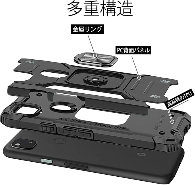 Google Pixel 5 ケース リング付き 耐衝撃 TPU クリア 薄型 軽量 スタンド機能 車載ホルダー対応 二重構造 指紋防止 全面保護 米軍MIL規格 スクラブ カメラ保護 擦り傷防止 取り出し易い スクラッ