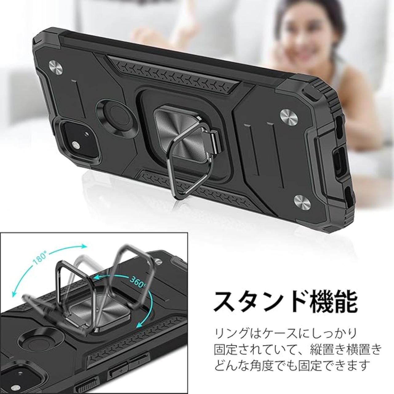 【リング付き・スタンド機能】後ろで嵌め込み式リング付き、伝統的なリングと比較して、アイフォーンの水平安定性を維持することができます。ケースを横向きにするとスタンド機能になり、携帯を横に放置できて、いつでもどこ