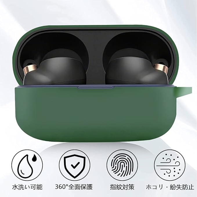 MOONMN【2021改良モデル】W F-1000XM4 ケース ソニー ワイヤレス イヤーホン 用 シリコンケース 全面保護カバー キズ防止 耐衝撃 装着充電可能 防水 防塵 紛失防止 保護ケース カラビナ付き (緑)