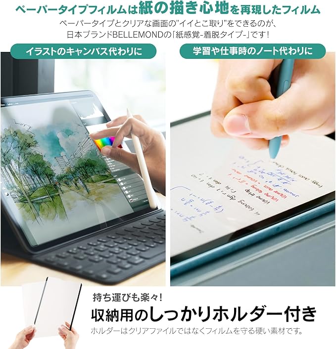 ベルモンド 旧型 iPad Air 10.9 / Pro 11 用 着脱式 ペーパータイプ フィルム マグネット | Air (第4〜5世代) / Pro (第1〜4世代) 共通 | ケント 紙のような描き心地 保護フィルム BELLEMOND B0416
