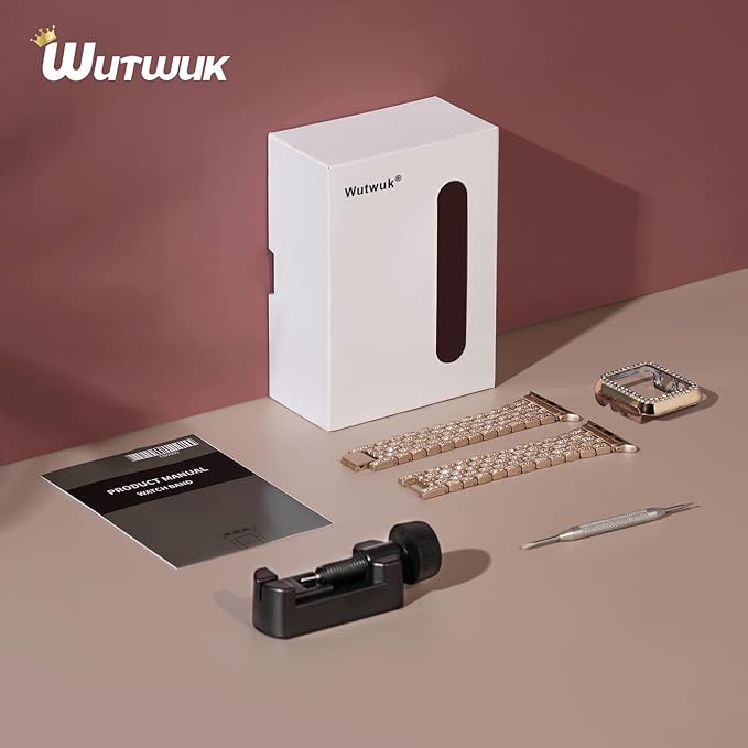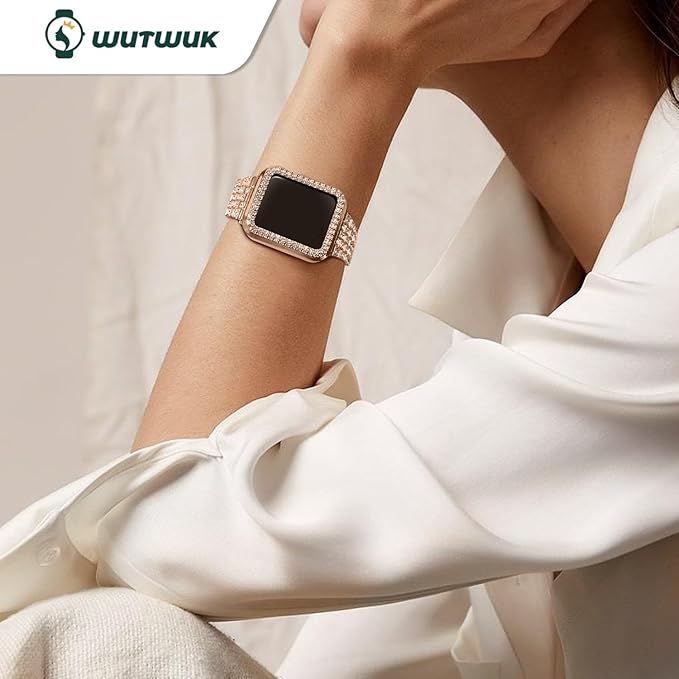 [wutwuk] Apple Watch ブレスレット 41mm 40mm 44mm 45mm 38mm 42mm レディース グリッター iWatch Series SE 9 8 7 6 5 4 3 2 1 ダイヤモンド ラインストーン ハード PC 保護フレーム 超薄型 保護ケース レディース ローズゴールド