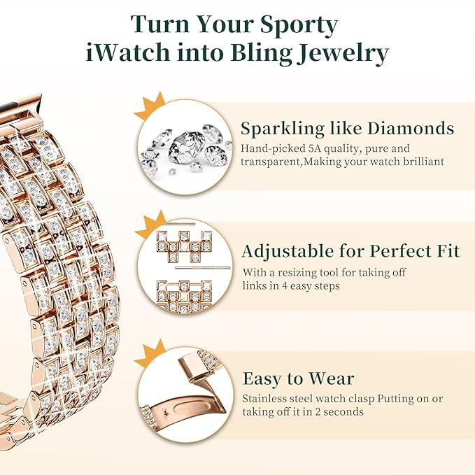 【自分を輝かせましょう】Apple Watch のストラップには 200 個以上の高品質のラインストーンが手作業でセットされており、簡単には落ちません。まるで宝石のようにエレガントで