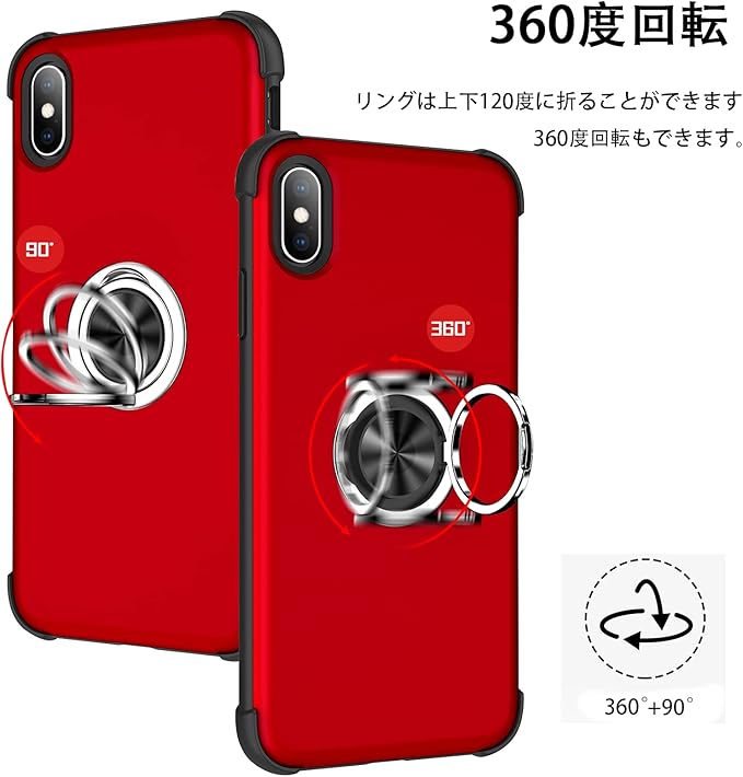 iPhone XR 用 ケース リング付き 耐衝撃 スタンド機能 シリコン アイフォン 8 Plus /7 Plus 用 カバー リング TPU 車載ホルダー対応 落下防止 防塵 薄型 軽量 一体型 変形防止 全面保護カバー アイフォン 用 携帯ケース 赤 W-YS360-15-02