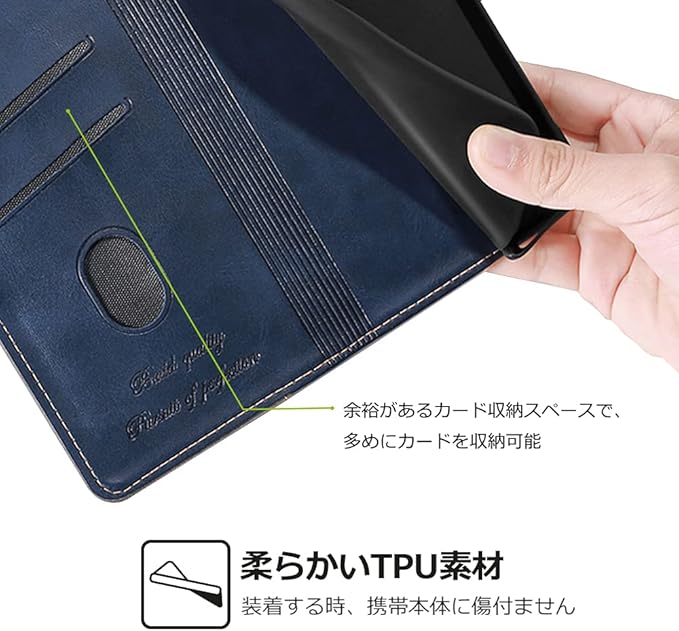 ?【便利なカード収納】便利なカードポケットが付いているから、定期券やよく使うカードを挿入しておけば通勤通学も楽々 磁石はケースの側面に内蔵あり、カード面に直接接しないので、磁気カード類が壊れる心配がありません。