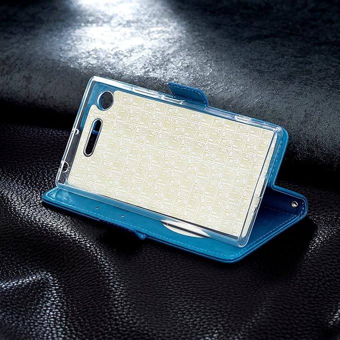 Xperia XZ1 ケース SO-01K/SOV36/701SO エクスペリア XZ1 手帳型ケースかわいい 型押し花柄 【CICIGO】(7色選べる)ストラップ付き マグネット式磁気 本革なカバー 全面保護 スタンド機能 耐汚れ 耐衝撃 カード収納 (Xperia XZ1(SO-01K/SOV36/701SO), C2-ブルー 青)