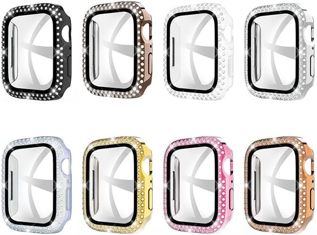 スマートウォッチ保護ケース・Apple Watch Series 9/8/7用 ケース ガラスフィルム ケース カバー かわいい ラインストーン きらきら 液晶カバー アップルウォッチ シリーズ7 45mm用 ハードケース 保護ケース フィルム一体 装着簡単[45mm(ゴールド)]