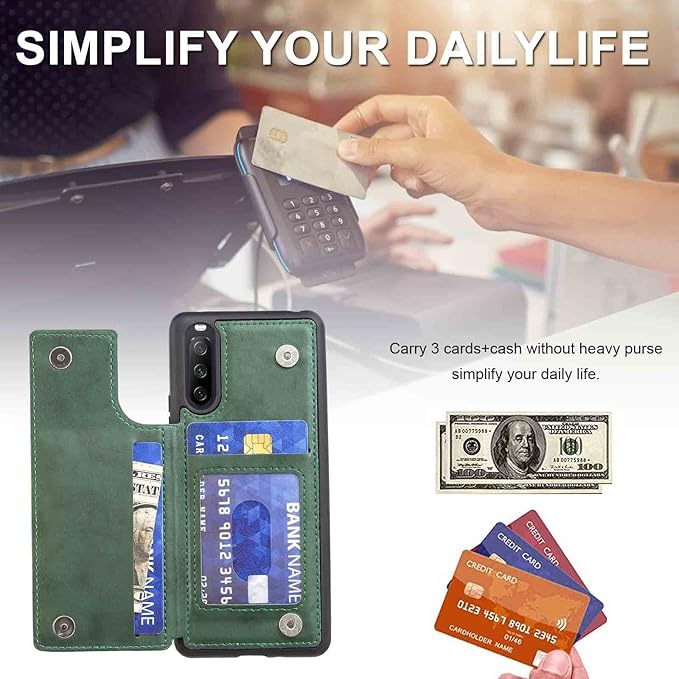 【Viesa】背面カバー ケース手帳型 Xperia 10 III/SO-52B/SOG04/A004SO 対応 SONY 背面型ケース (ダルグリーン) 軽 薄 持ちやすい、横置きスタンド機能 財布型 スマホバック?カバー エクスペリア10iii GREEN