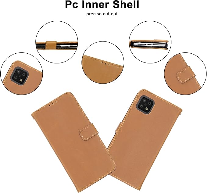 【 Viesa 】クラシックレトロ 手帳型 ケース AQUOS sense6 / docomo SH-54B / au SHG05 対応 SHARP スマホケース (ブラウン) PU革 財布型 マグネット式 カード入れ スタンド機能 横開き 衝撃吸収 薄型 手帳ケ