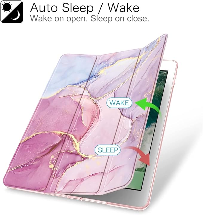 Fintie iPad 9.7 2018 2017 ケース ペンホルダー付き Apple Pencil 収納可能 三つ折スタンド スリープ機能 軽量 薄型 半透明 バックカバー iPad 9.7 インチ 第6世代 / 第5世代 対応 (モデル番号A1893、A1954、A1822、A1823)(柄 X マーブルピンクA)