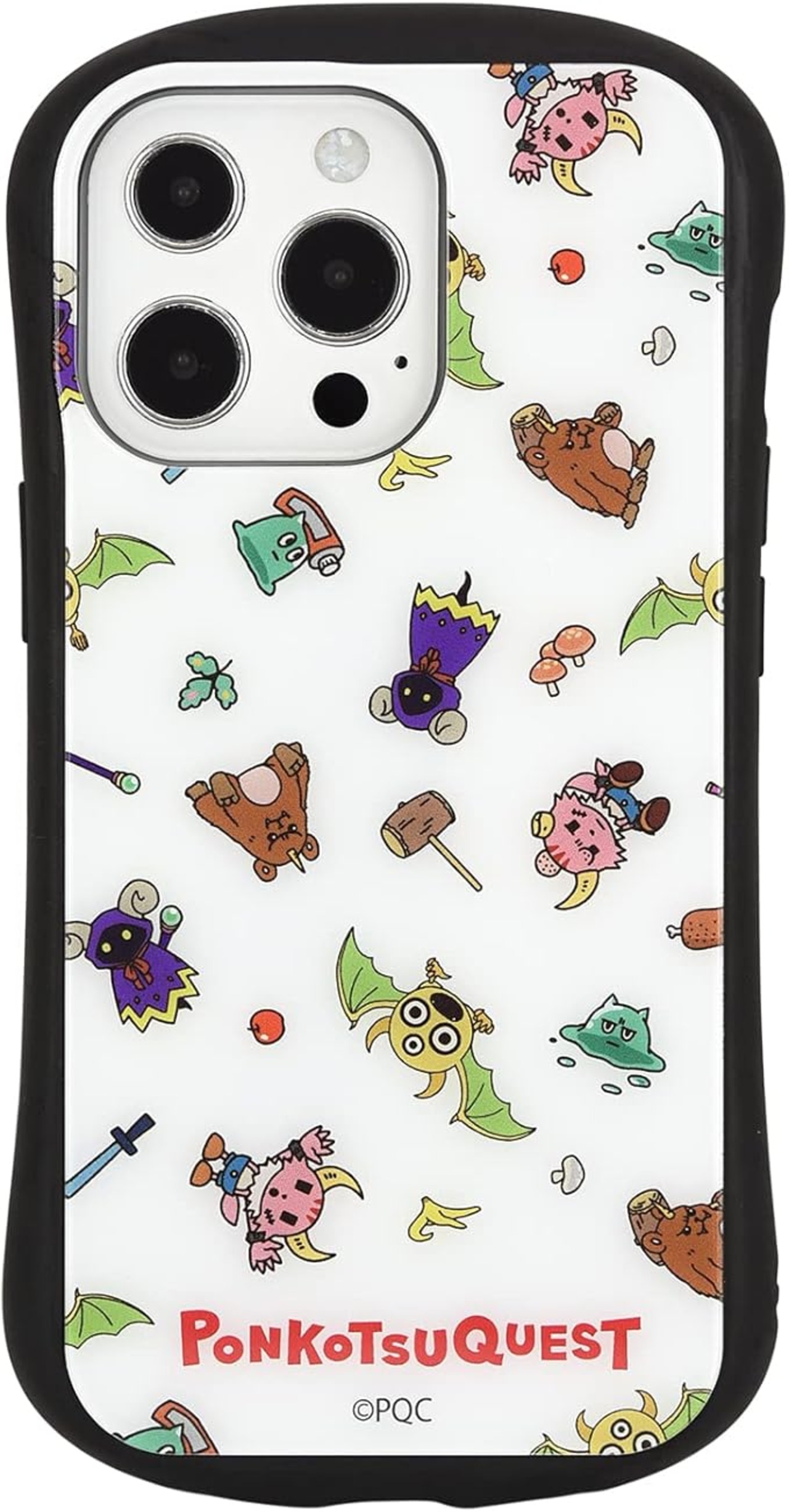 グルマンディーズ ポンコツクエスト iPhone13 Pro(6.1インチ)対応 ハイブリッドガラスケース 総柄 PQ-15B