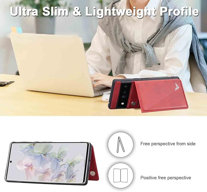 【 Viesa 】 背面カバー ケース手帳型 Google Pixel 6 Pro Softbank 対応 GOOGLE ランヤード付 背面型ケース (レッド) 美しい、軽 薄 持ちやすい、滑り止め、すり傷防止マグネット 横置きスタンド機能 財布型 スマホバック?カバー グーグル ピクセル6プロ ソフトバンクpixel6pro RED