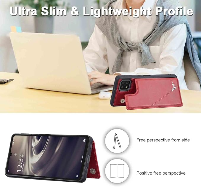 【 Viesa 】 背面カバー ケース手帳型 AQUOS sense6 / docomo SH-54B / au SHG05 対応 SHARP ランヤード付 背面型ケース (レッド) 美しい、軽?薄 持ちやすい、滑り止め、すり傷防止マグネット 横置きスタン