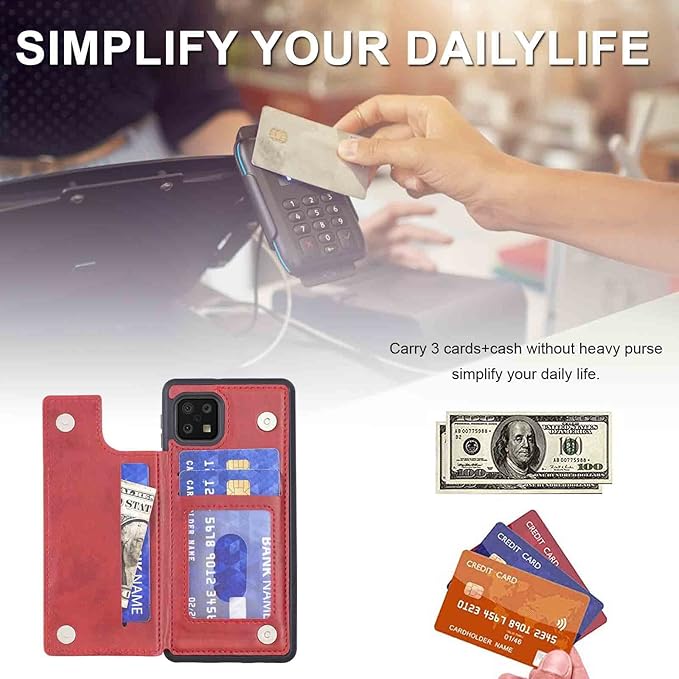 【 Viesa 】 背面カバー ケース手帳型 AQUOS sense6 / docomo SH-54B / au SHG05 対応 SHARP ランヤード付 背面型ケース (レッド) 美しい、軽 薄 持ちやすい、滑り止め、すり傷防止マグネット 横置きスタンド機能 財布型 スマホバック?カバー シャープ アクオス センス6 ドコモsh54b sense6 RED
