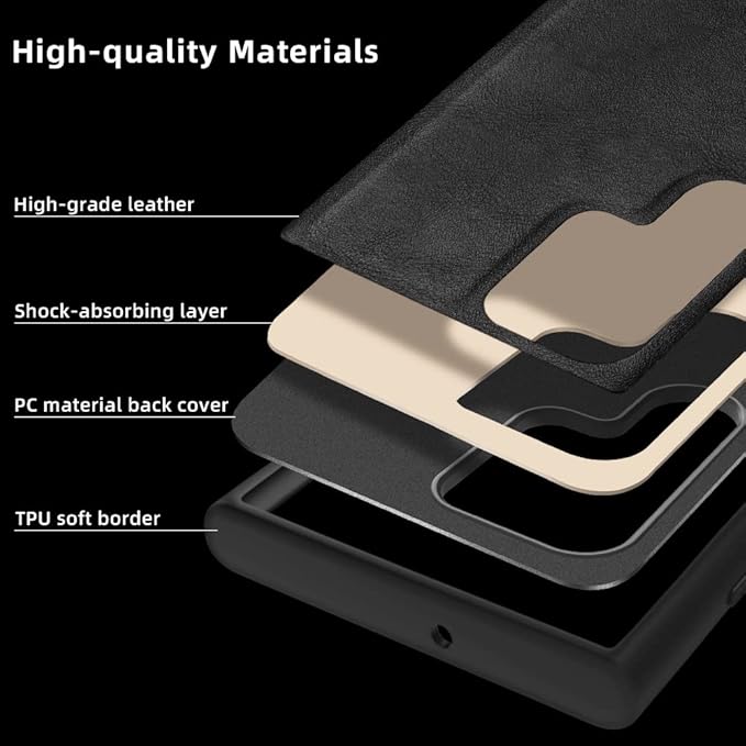 X-level Samsung Galaxy S22 Ultra SC-52C | SCG14 ケース レザーと【Earl3シリーズ】耐衝撃 薄型 スマホケース 対応 Samsung Galaxy S22 Ultra 5G, ブラック
