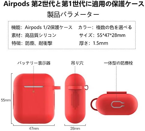 AirPods ケース AirPods第2世代と第1世代に適用(前のLEDライトが見える) シリコンカバー 全面保護ケース Apple エアーポッズ カバー 軽量 小型 かわいい TPUケース 耐衝撃 防塵 カラビナ付き 紛失防止 SERFER (イエロー)