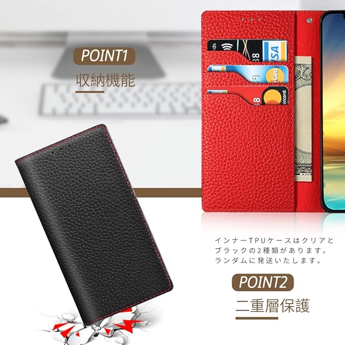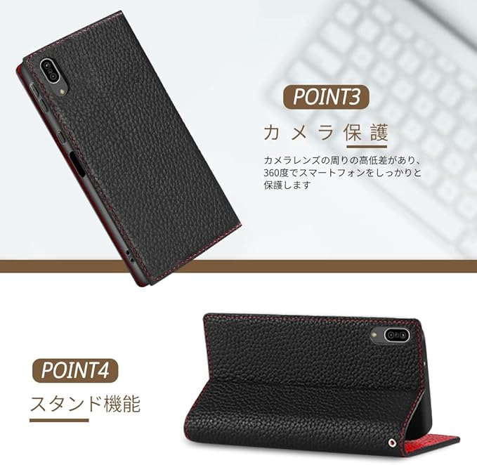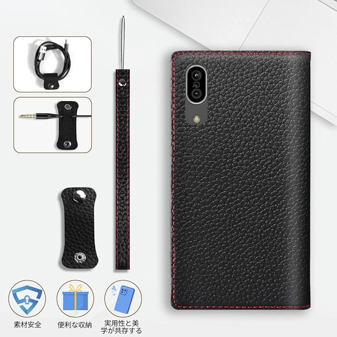 TENSIK AQUOS sense3 ケース 手帳型 SH-02M/SHV45/SHV48 ケース 高級牛本革 アクオスセンス3 スマホケース Android One S7/sense3 lite/sense3 basic 携帯カバー 財布型レザー 手帳型カバー本革 マグネット式 スタンド機能 ストラップ付き カードポケッ トギフトボックス付き ブラック レッド