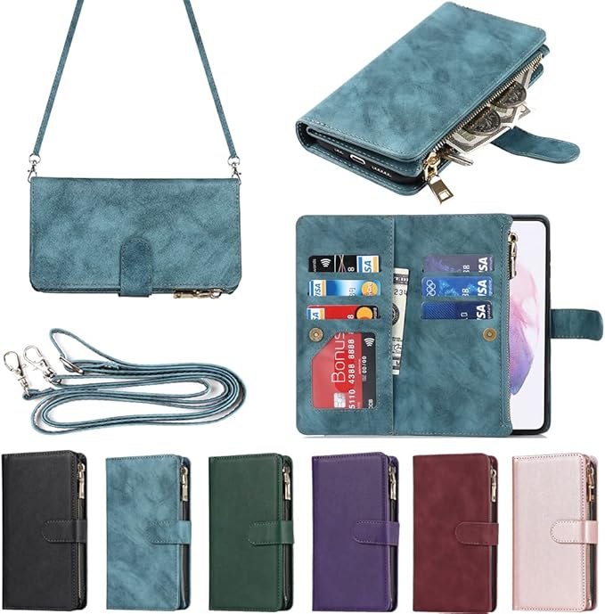 Eastwave サムスン ギャラクシー A32 5G ケース Samsung Galaxy A32 5G 縄掛けケース 手帳型 財布型 ICカード コインポケット ストラップ付き カード 収納 小銭入れ ファスナーポケット付き PUレザー 6色