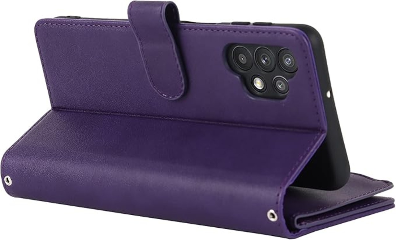 Eastwave サムスン ギャラクシー A32 5G ケース for Samsung Galaxy A32 5G 縄掛けケース 手帳型 財布型 ICカード コインポケット ストラップ付き カード 収納 小銭入れ ファスナーポケット付き PUレザー 6色 パープル
