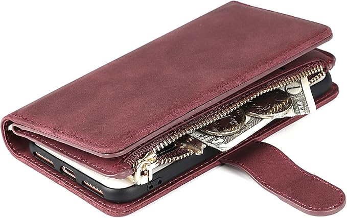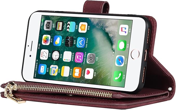 Eastwave アイフォン SE 2022 第3世代 ケース iPhoneSE 2020 第2世代 手帳型 iPhone 8 7 ケース 縄掛け 財布型 ICカード コインポケット ストラップ付き カード 収納 小銭入れ ファスナーポケット付き PUレザー 6色 レッド