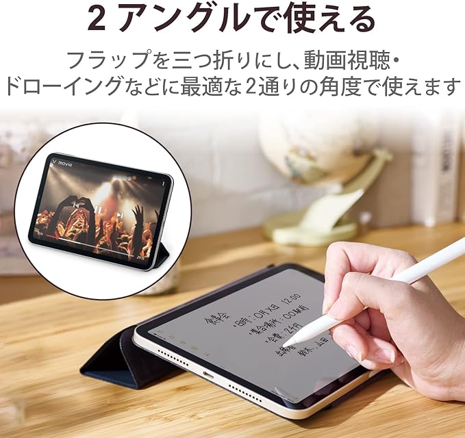 極限まで薄さにこだわった軽量スリムなiPad mini 第6世代(2021年モデル)用マグネット吸着フラップケースです。