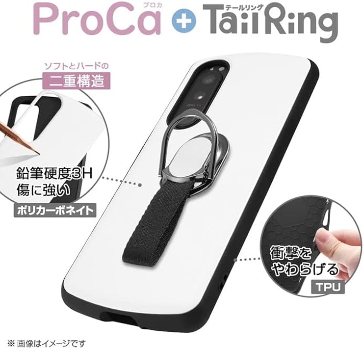 Xperia 5 III ケース SO-53B SOG05 カバー 耐衝撃ケース ProCa + TailRing スマホリング付き レッド 赤 シンプル エクスペリア5iii 保護 シンプル かわいい おしゃれ かっこいい 可愛い オシャレ 無地 ストラップホール レイアウト au docomo