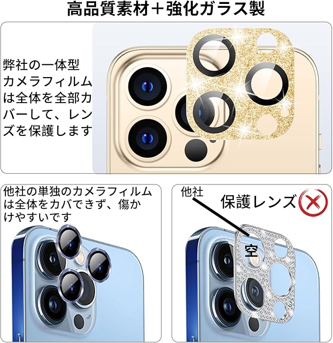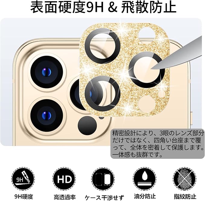 iPhone13 Pro/iPhone 13 Pro Max カメラ保護ガラスフィルム 【1枚】 ゴールド カメラレンズ保護カバー カメラカバー キズ防止 耐衝撃 防塵 防滴 薄型 3D全面保護 iPhone13 Pro / iPhone13Pro Max 対応 カメラガラスフィルム