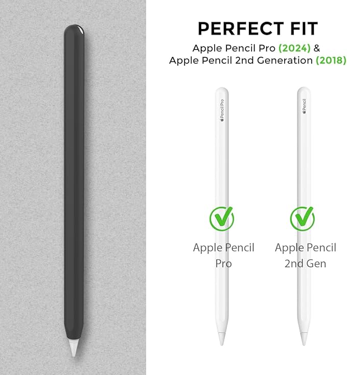 AhaStyle Apple Pencil第2世代&Apple Pencil Pro用超薄型Apple Pencilシリコン保護ケース (ブラック, 単色1本)
