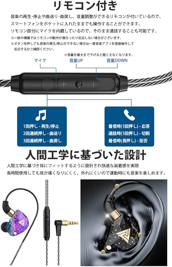 人間工学に基づき耳にフィットするように設計され快適な装着感を実現