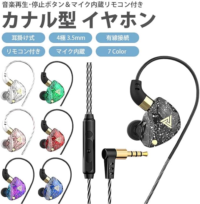 prendre カナル型 耳掛け式 イヤホン 4極 3.5mm 有線接続 リモコン付き マイク内蔵 通話 音楽 スマートフォン タブレット スマホ (グリーン) QKZ-SK8-GR