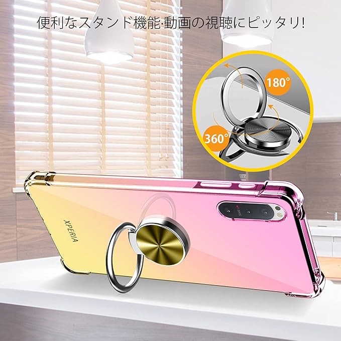 AQUOS zero6 ケース リング クリア TPU 耐衝撃ケース 透明 車載ホルダー スタンド機能 グラデーション 薄型 アクオス ゼロ6 カバー 全面保護 360回転 軽量 シリコン 黄変防止 防指紋 防塵 スリム 滑り防止 人気 SH-RM18 SHG04 A102SH 携帯カバー ピンク+ゴールド YZ51-91