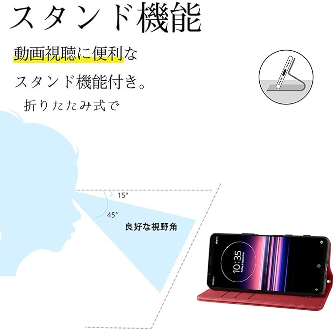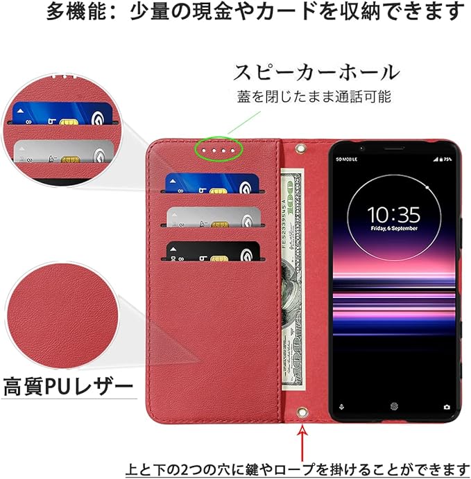 Xperia 5 ケース 手帳型 高質PUレザー Xperia 5 カバー Sony SOV41 ケース ソニー エクスペリア5 耐衝撃 SO-01M カバー Case 皮革 内蔵マグネット開閉式 ベルトなし スマホケース おしゃれ カードポケット スタンド機能 便利 スプラット同梱 携帯ケース レッド