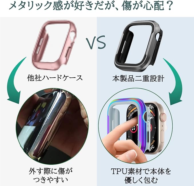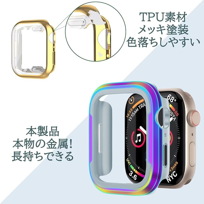 Miimall Apple watch series10/9/se2/ultra対応 44mm ケース 衝撃吸収 アルミ合金+TPU 二層構造 側面保護 衝撃に強い 簡単に取り付け 高耐久 ワイヤレス充電 アップルウォッチ ケース 保護カバー 44mm(カラフル)