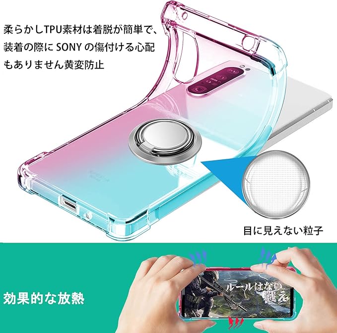 Xperia 1 IV ケース リング クリア TPU シリコン リング付き 薄型 SO-51C カバー SOG06 ケース グラデーション色 ケース 軽量シリコン 耐衝撃 指紋防止 360回転 車載ホルダー対応 一体型 人気 携帯カ