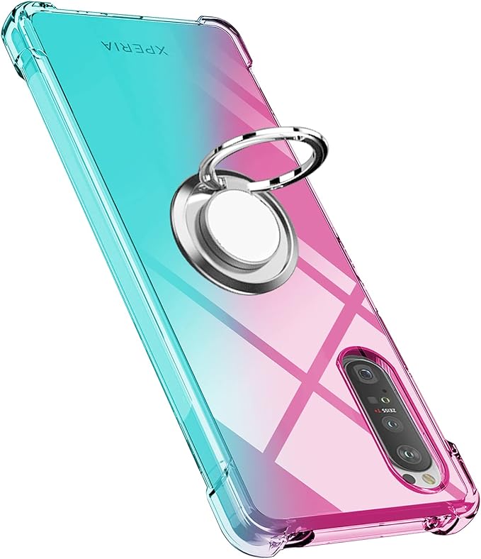 Xperia 1 IV ケース リング クリア TPU シリコン リング付き 薄型 SO-51C カバー SOG06 ケース グラデーション色 ケース 軽量シリコン 耐衝撃 指紋防止 360回転 車載ホルダー対応 一体型 人気 携帯カバー (ピンクグリーン)