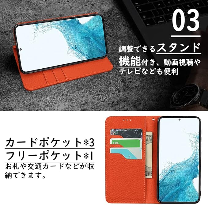 CLICSUN Galaxy S22 対応ケース SC-51C SCG13 手帳型 高級牛本革 ぎゃらくしー S22 対応ケース 手帳型 Galaxy S22 5G 対応カバー ギャラクシー S22 対応ケース 手帳型 本革 レザー カバー 全面保護 衝撃吸収 スタンド機能 ストラップ付き マグネット式 カードポケット ギフトボックス付き ブラウン オレンジ
