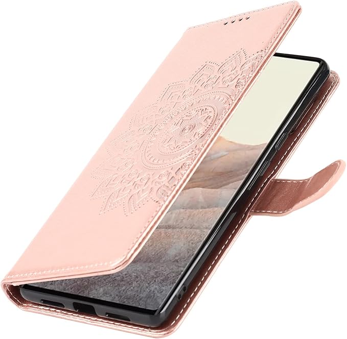 Eastwave for Google Pixel 6 ケース 財布型 for google ピクセル 6 手帳型 for Pixel6 カバー手帳 ストラップ付き 明るい色 フラワープリント PUレザー カード収納 横置きスタンド 機能 内蔵マグネット?ピンク