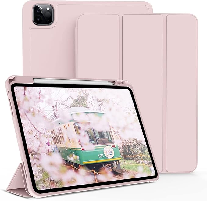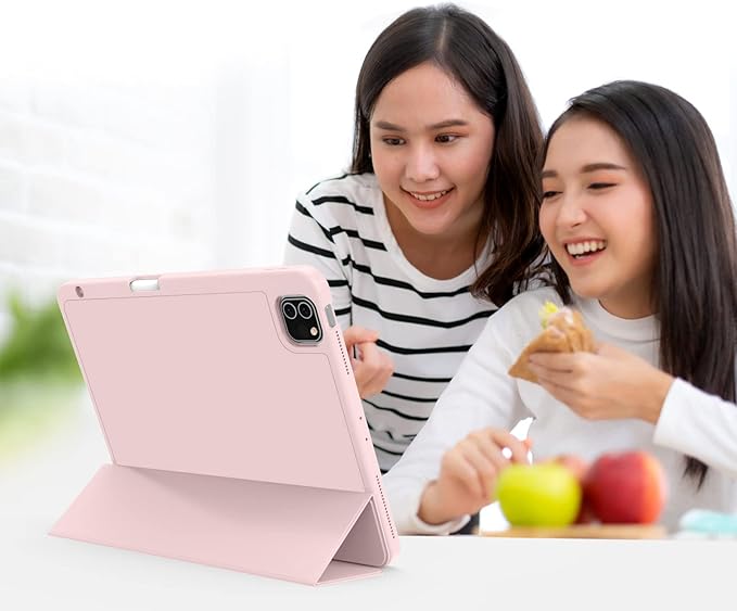 KenKe iPad Pro 11 ケース 第4/3/2世代 2022/2021/2020 iPad Pro 11インチ カバー 軽量 柔らかいシリコン TPU材質 ペン収納 iPad 保護カバー 第2世代Pencil充電対応 3段階折り畳み可 スタンド マグネット付き 自動スリープ機能 (ピンク)