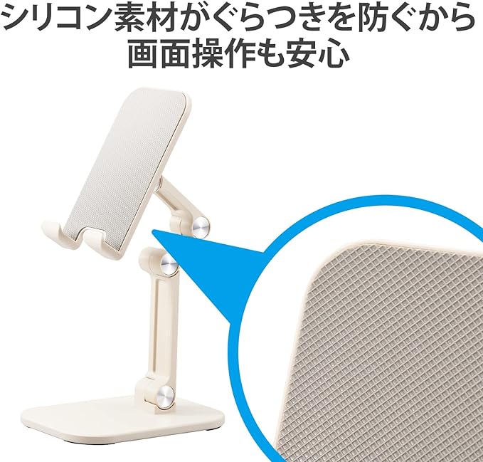 スマホ置き部分にはシリコンパッドを採用し、画面操作時にスマホのグラつきなどを防ぎます。