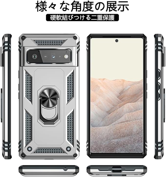 【WYEPXOL】Google Pixel 6 ケース リング付き対応 落下衝撃吸収 TPU PC 米軍MIL規格 二重構造 スタンド機能 スマホケース グーグル ピクセル6 ケース 耐衝撃 車載ホルダー対応 軽量 擦り傷防止 取り出し易い 落下防止 携帯カバー 銀 ZW57-07
