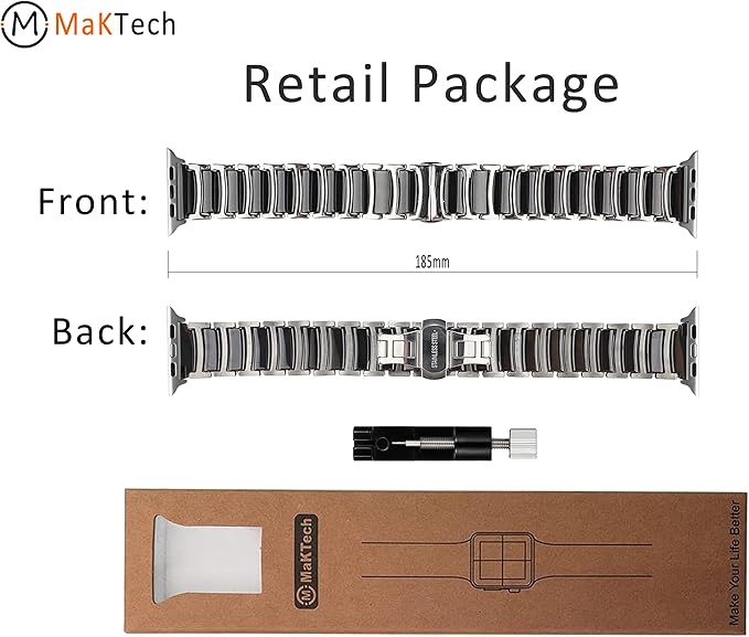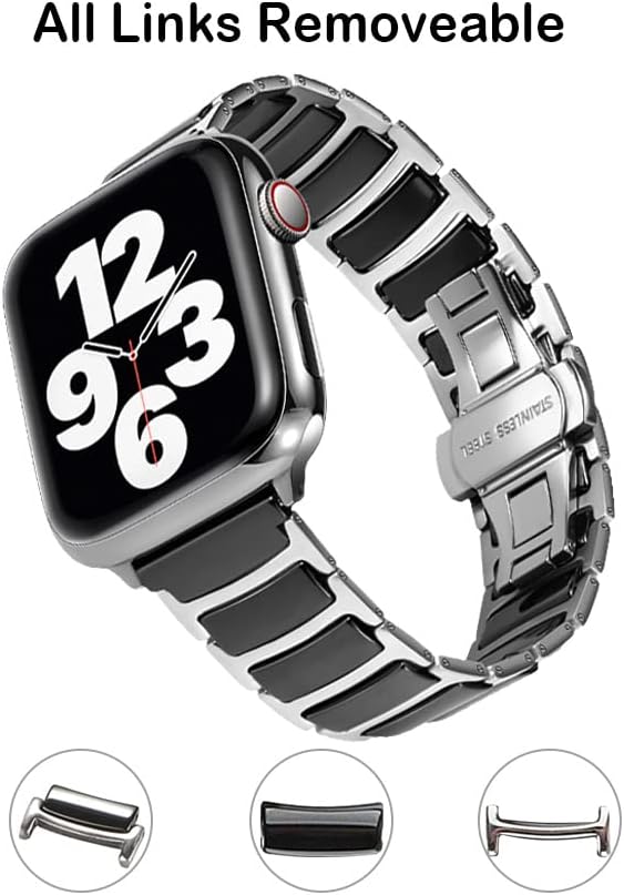 MaKTech セラミックバンド、薄型ステンレス象嵌セラミックベルト、Apple Watch 10/9/Ultra 2/SE/8/7[2024]に対応 (42mm/41/40mm,シルバー/ホワイト)